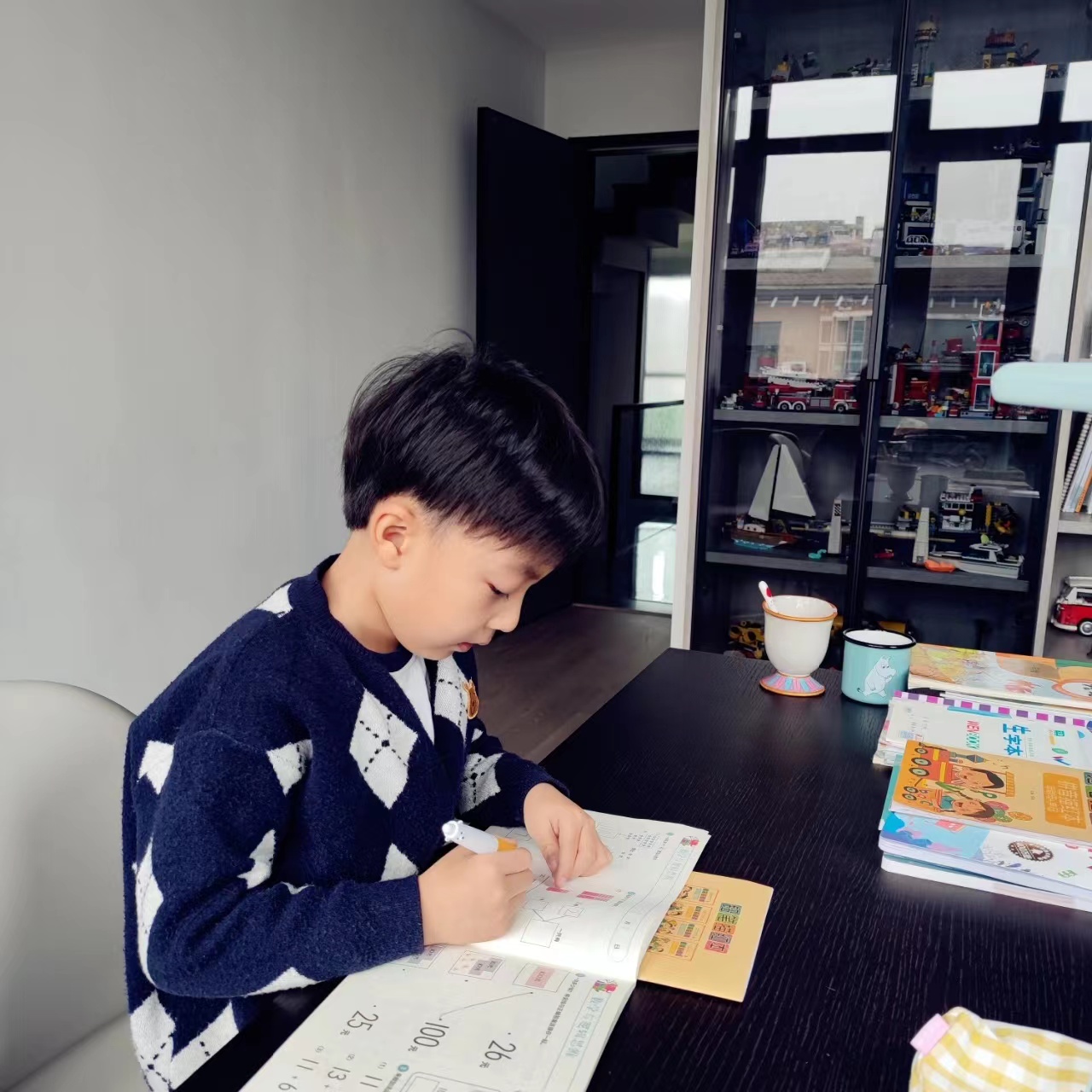 三岁开始,我就在家给kimi上课,与其说是上课,不如说是做游戏。三岁建议买摩比数学,七田真来给孩子做数学启蒙,像玩游戏一样,孩子非常喜欢。认字也可以开始进行,当然前提是孩子不排斥,我觉得只要找到适合孩子的方式,他们都爱上学习。我做这些,也并不是为了他以后能考高分,而是让他觉得学习很有趣,真正喜欢学习。