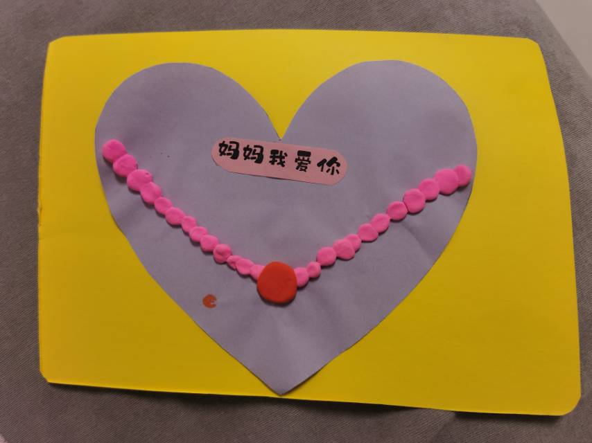 今天是母亲节前最后一天上学,赵琳早就告诉我今天会有礼物送给我。还挺期待的,早早的去接她放学。送我的礼物是一条用太空泥做的项链,搓了很多小球球,一个一个沾在一起,应该是费了不少功夫。谢谢亲爱的宝贝,做你的妈妈我很幸福!